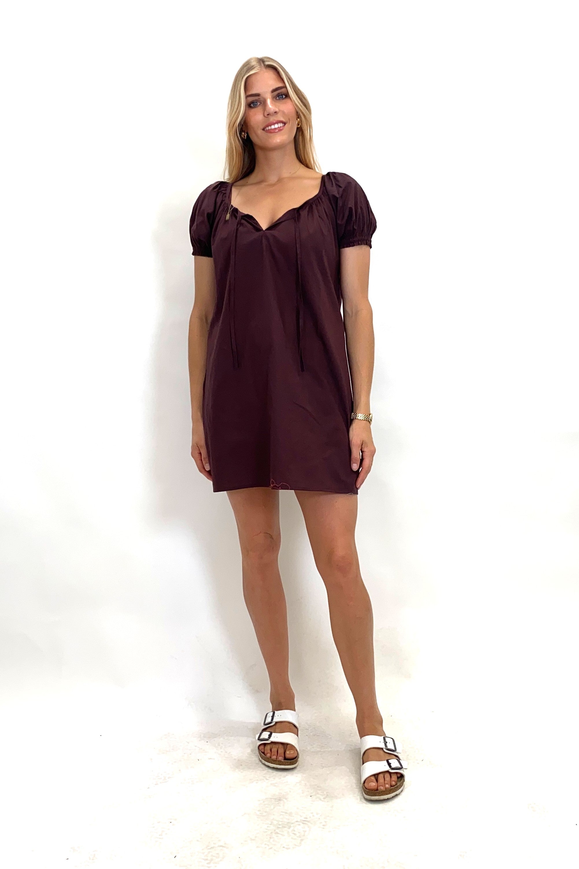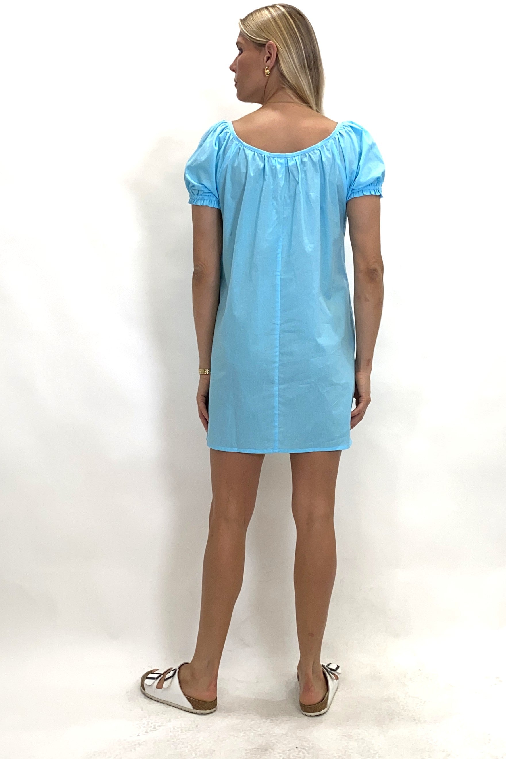 This 100% cotton dress is a chic and comfortable piece perfect for warm-weather wear. Designed in a rich 3 colours Tuscany, cornflower and mocca, it features a flattering sweetheart neckline with delicate tie detailing and short puff sleeves that add a touch of romance and pockets. The relaxed A-line silhouette provides an easy, breezy fit, making it ideal for casual outings or daytime events. The lightweight cotton fabric ensures breathability and softness, while the short length keeps the look youthful and fresh. Paired here with white buckle sandals, it’s a versatile staple that can be dressed up or down with ease.