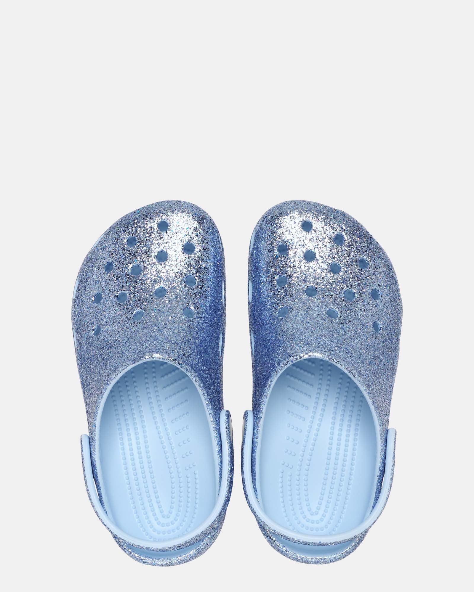 Instantly recognisable, Crocs exist to make the world a happier place through their collection of quirky, colourful and undeniably fun clogs, perfect for outdoor play. Classic Chunky Glitter Clog kids is a sandal with waterproof uppers, perfect for sun and sea
